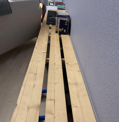 Seina kinnitatud pingi ja riiulite eemaldamine, seina parandamine