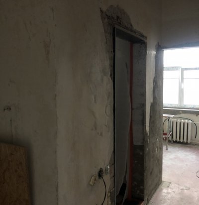 Ukseava kinni müürimine, uue ukseava lõikamine ja lükandukse paigaldamine.