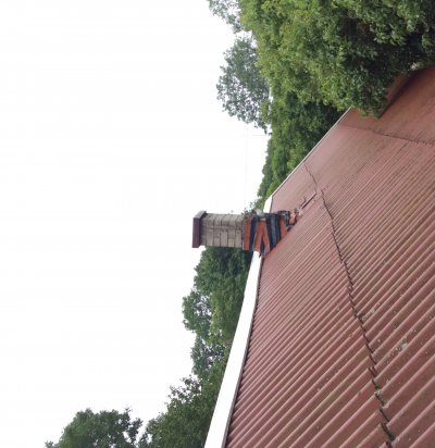 Korstna ladumine, plekist alumine osa korstna jalale katusele.