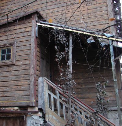 Rõhtpalkmaja alumiste palkide vahetus, palkseina sirgendamine