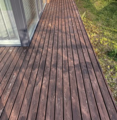 Kahekordse puitvilla värvimine, vihmaveesüsteemi korrastamine, trepikäsipuu paigaldus, soojuspumpade varkestuskastide paigaldus