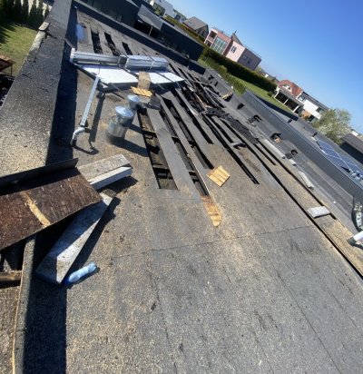 Põlenud lamekatuse lahti võtmine ja uue ehitamine