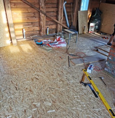 Vaheseinte ehitus liug uksega ja rõdupiirdele saepuruplaatide paigaldus koos kinnitusega