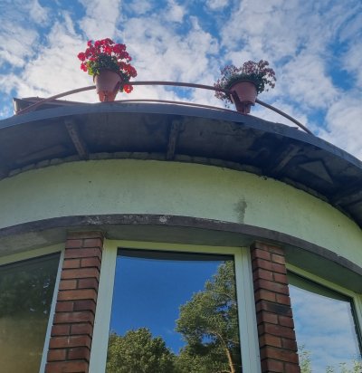 Paariline (eestööline) koos oma tööriistadega eramaja rõdu lamekatuse renoveerimisele