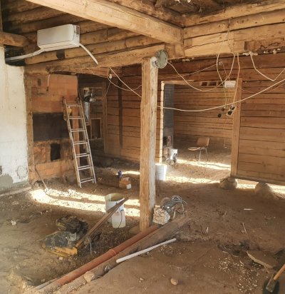 Soodapritsiga lagede ja seinade puhastus vanas palkmajas