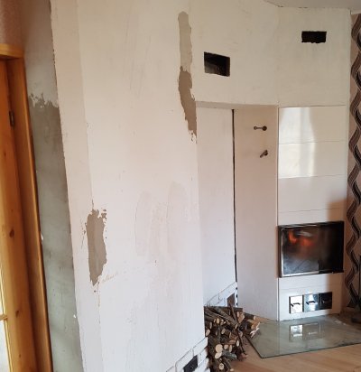 Seinte krohveldamine, kipsplaatide taastamine, plaatimine ja värvimine
