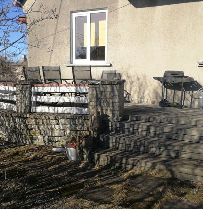 Betoonist välistrepp ja sillutiskivist pandus