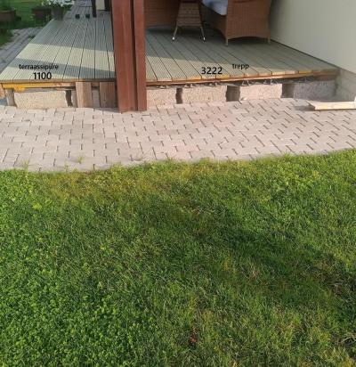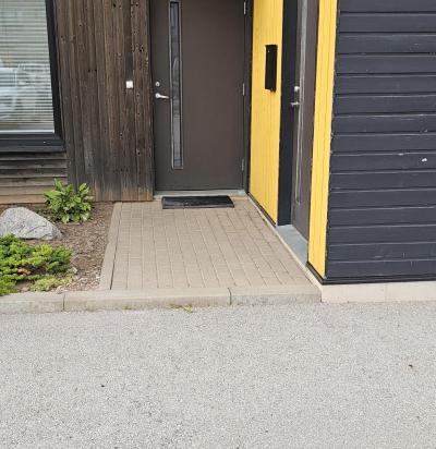 Eramu varikatuse all olev välisukse esine põrand ja trepp