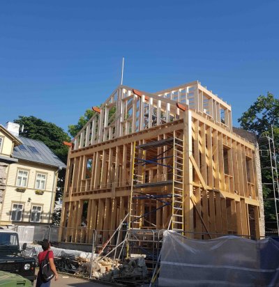 Puitkarkass maja ehitus .