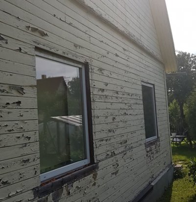 Maja fassaadi laudiseosa korrastus ja värvimine.