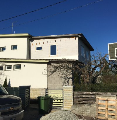 Maja ühe välisseina soojustamine, 2 ukse ja akna paigaldamine