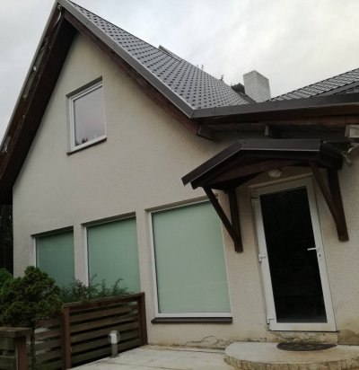 Maja fassaadi osaline ümberehitus.
