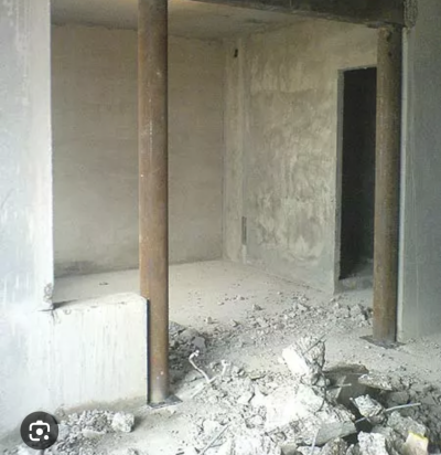 kandva seina lammutus ja metalli tugevduse karkasi paigaldus