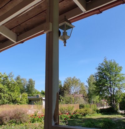 Terassil katuse tugiposti mädanenud jupi vahetamine