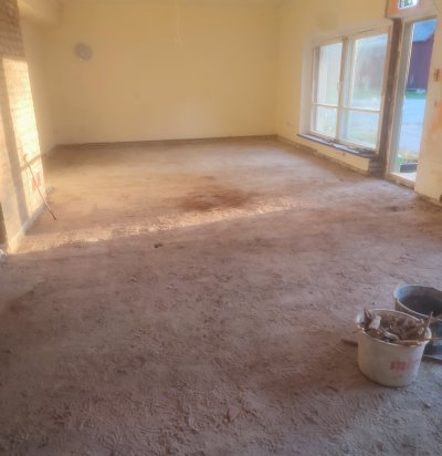 Betoonipõranda valamine + põrandakütte torustik + vesi + soojustus + kanalisatsioon