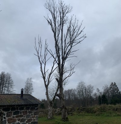 Arboristile,puude langetamine,2 suurt saare puud ja 1 väiksem kuivanud kuusk.