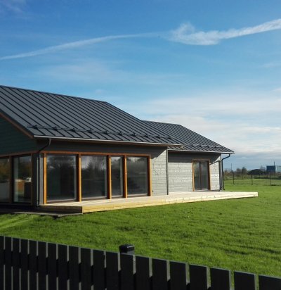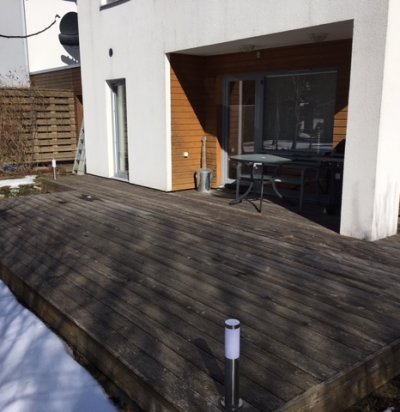Terrassi ehitus 190m2 26x118mm termomänd ja sokliplaadi paigaldus vundamendile. 10mm koos rooviga