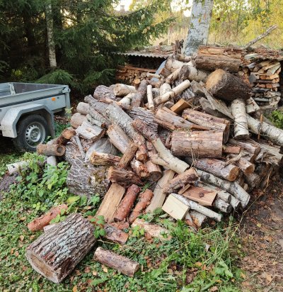 Kahe kõrge puu langetus ja äravedu (üks kaheharuline)