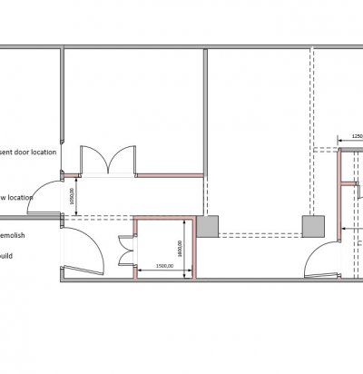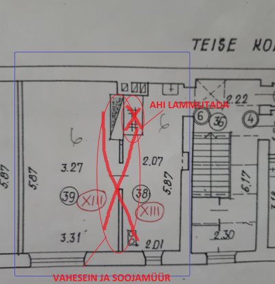 Kivimaja 4-toalise korteri ümberehituse tööprojekti koostamine: kahe toa vahelise seina lammutamine ja uue seina ehitamine.