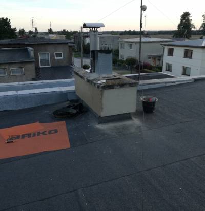 SBS katuse kattematerjali paigaldus ja parapeti plekide vahetus.