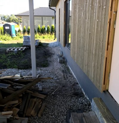 Kahekordse viilkatusega kivimaja soojustamine, sokli soojustamine, panduse ehitamine, vihmaveesüsteemi paigaldus ja tuulekastide ehitus.