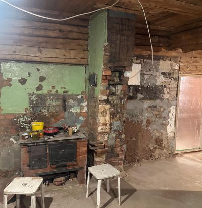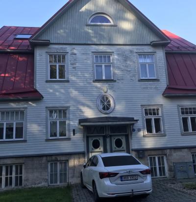 Laudfassaadi vanast värvist puhastus ja linaõlivärviga ülevärvimine.