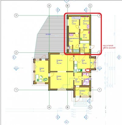 Sauna ja sauna abiruumide betoonpõranda valamine koos vesi-, küte ja vesipõranda kütte kommunikatsioonide välja ehitamisega