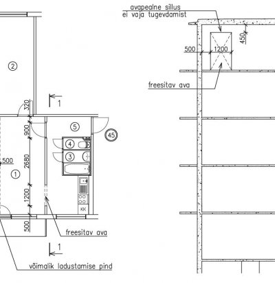 Freesimine korteri köögi ja toa vahelisse seina ava