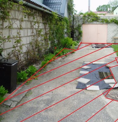 Tänavakivide paigaldusja garaaziesise autopealesõidu tee renoverimine.