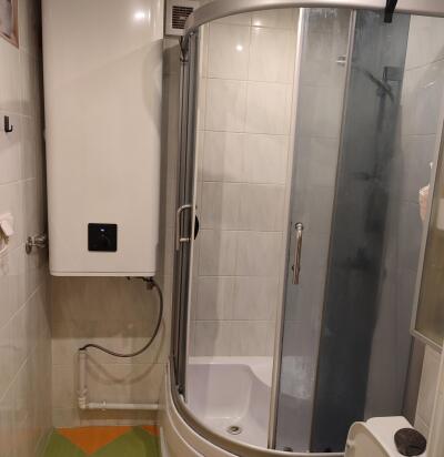 Vana dušinurk, WC ja segisti demonteerimine ning uute (kumerduksiiniga dušinurk, kitsas WC‑pott, premium segisti) paigaldus. Tooted valitakse koos pakkujaga pärast ülevaatust. Hind: brutosumma, kõik tööd ja materjalid hinnas