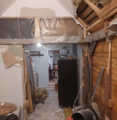Korstnale 3 rida telliseid lisaks, pööningule korstna ümber mineraalvilla plaadist konstruktsiooni ehitus, ahju kinni müürimine, kamina eemaldamine ja korstnaava kinni müürimine