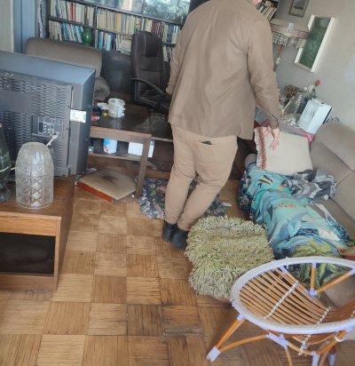 Esikuseina lammutus ja garderoobikapi seina ladumine