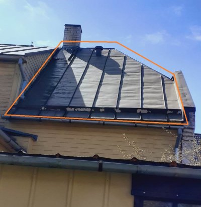 Pärnu linnas valtsplekkkatuse osaline vahetus "klassik" profiiliga + 3-le korstnale korstnakraed