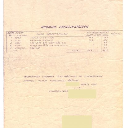 Andmete esitamise teatis. 3-toaline 4 -toaliseks registreerimine. Köök tõstetud ümber