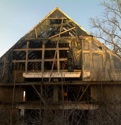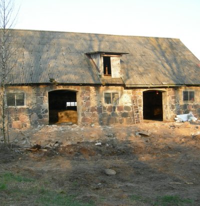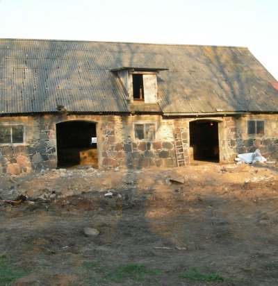Kõrvalhoone seinte ladumine Narva tuhaplokist