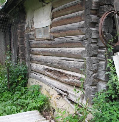 Palkhoone ehitus käsitsitööna kohapeal (sepikoda)