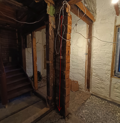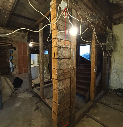 Maja sees puidust tugipostide paigaldus ja vahetus