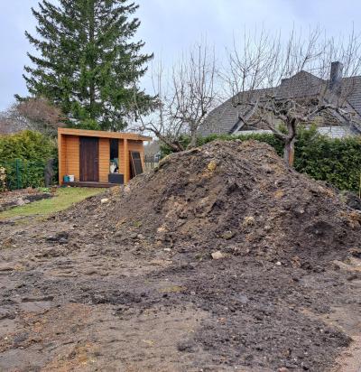 Puude langetamine, kändude ja vana vundamendikivide koristus, pinnasetööd