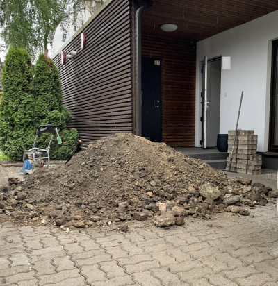 Kortermaja hoovis sademeveede ärajuhtimine ja parkla koha killustikuga katmine