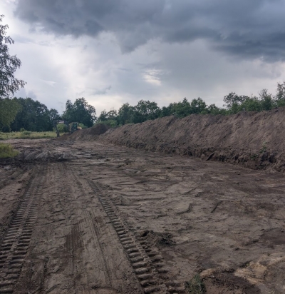 Pinnase tasandus ekskavaatoriga kraavi kõrval (laius 4-5m ja pikkus ümbes 100m distantsil)