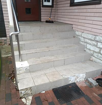 Kortermaja trepikojas kahe põrandaplaadi vahetus