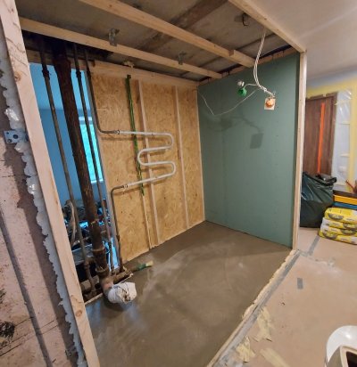 Korteris kahes uues vannitoas põrandate ja seinte plaatimine