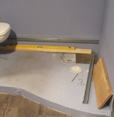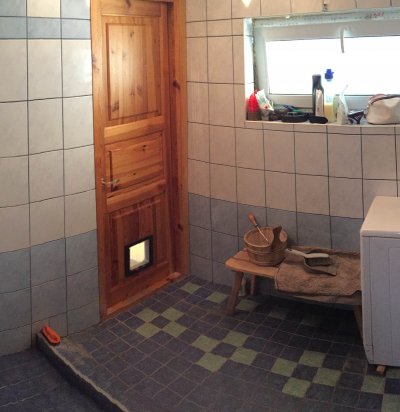 Sauna dushi- ja eesruumi põranda tasandamine ja plaatimine.