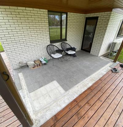 Ukse esise ja auto varjualuse astme plaatimine + kiviparketi tõstmine ümber ukse esise