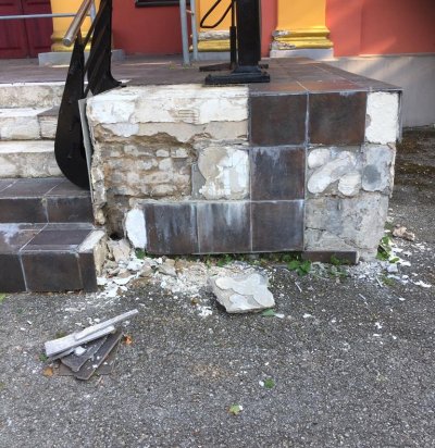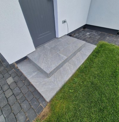 Välisukse esise plaatimine õues