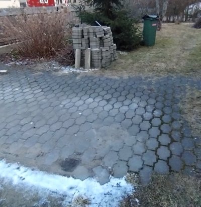 Tänavakivi maha, pinnase tõstmine u 10cm, uus kivi, mis kannatab autot, uue kivi paigaldus (ei ole ise kive ostnud) + töö käigus tehnoloogiad liivamurelaste vastu (sipelgad) +