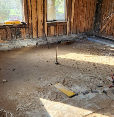 Elamu elutoa põranda lammutus, uue ehitus koos põrandakütte paigaldamisega