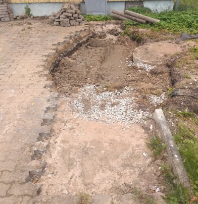 Kõnnitee ehitus tänavakiviga ja kõrvalhoone aluspinna ettevalmistus