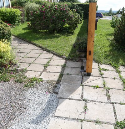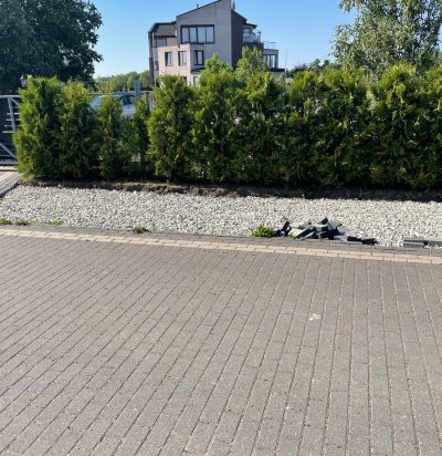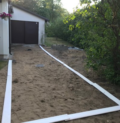 Majaääre kõnnitee kiviplaadi ja autoala murukivi paigaldus