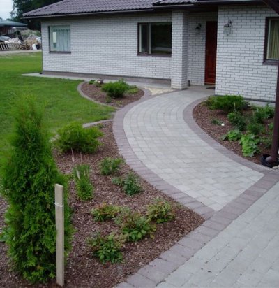 Kõnnitee- ja auto sissesõidutee aluse ehitus ja plaatide paigaldus